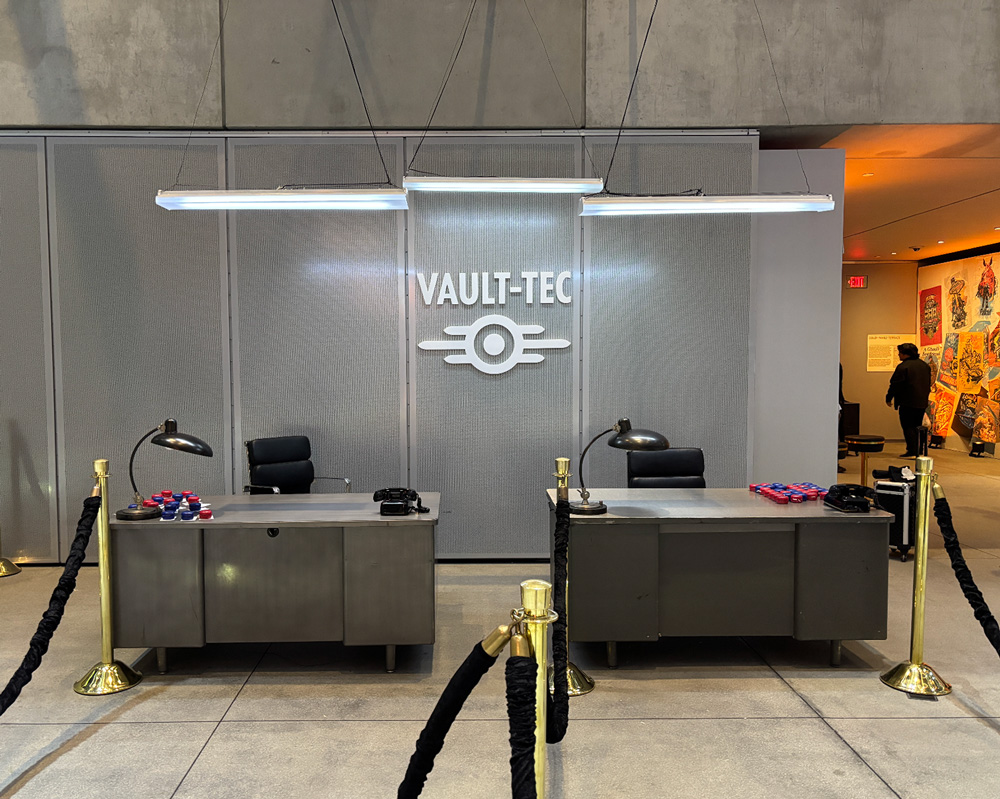 Guests don’t just receive merchandise and giveaways — they receive something made specifically for them. It unites the cast and crew together as everyone received the same yo-yo (with the Fallout logo), but got to personalize it in a way that spoke to them. Some people chose special dates that related to the day they found out they originally got their role. Others chose their character names or their own!